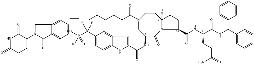 SD-36 是一种强效、选择性和有效的 PROTAC 降解剂,可降解 STAT3 蛋白,Kd 约为 50 nM。它还能有效降解细胞中突变的 STAT3 蛋白并抑制 STAT3 的转录活性,IC50 为 10 nM。它还具有抗肿瘤活性。