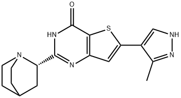 Simurosertib (TAK-931)是一种口服细胞分裂周期7(cell division cycle 7, CDC7)选择性抑制剂,IC50<0.3 nM,诱导S期延迟和复制应激,通过中心体失调和染色体错误分离导致有丝分裂畸变,从而在癌细胞中产生不可逆的抗增殖作用。